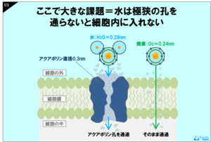 アクアポリンという小さな孔(min直径たったの0.3nm)を通るしかない。